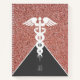 El Nurse Caduceus Rosa Gold Purpurina Monogrammed Notebook es un moderno y elegante modo de mantenerse al día con notas importantes o notas de clase de enfermería. Delantera de cuaderno en espiral está diseñada con efecto abstracto de chispas de imitación doradas grises y rosas. En el centro hay un gran caduceus blanco con iniciales personalizadas de tres letras. Puede cambiar a un nombre o texto personalizado si lo desea. Hace una gran idea de regalo para una enfermera, profesional o médica para cualquier ocasión.