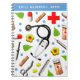 Cuaderno de enfermería creativo con estetoscopio personalizado y suministros de enfermería. Para personalizar el texto de edición para agregar el nombre de la enfermera.