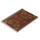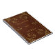 Libro de notas personalizado con la foto de un bonito libro de antigüedades que se une con la decoración marrón y dorada. El diseño de una lechuga de miel es el elemento principal de este enlace de piel de cabra marrón, con puntos y hojas que llenan las esquinas. Cortesía de la Biblioteca Nacional de Nueva Zelanda - editada y aplicada sobre este tema por Alma Wad .