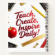 Inspirador diseño de citas de profesores con manzana y lápiz sobre fondo transparente.
