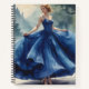 Una princesa con un vestido de baile azul profundo que fluye, capturada en una acuarela suave y dinámica, transmite un sentido de movimiento y libertad.