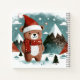 Un oso alegre vestido de Santa trae alegría festiva a un paisaje montañoso sereno y nevado. Con su traje rojo esponjoso, mitones acogedores y ojos brillantes, este oso adorable se encuentra contra un fondo de picos suaves cubiertos de nieve y pinos. Las líneas suaves dibujadas a mano y el trabajo de pincel texturizado aportan un encanto cálido y nostálgico a la escena. Los azules y blancos fríos del entorno alpino contrastan maravillosamente con los rojos y marrones cálidos del oso, mientras que delicados copos de nieve flotan silenciosamente por el cielo. Un diseño caprichoso y reconfortante que captura el espíritu de la magia invernal y la alegría navideña, perfecto tanto para pequeños aventureros como para soñadores navideños.