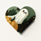 Adorable diseño de Halloween con simpáticos fantasmas blancos y negros rodeados de calabazas en un divertido estilo de arte punteado. Ideal para camisetas, bolsos de té, papelería y mercadería de Halloween de temporada.