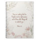 Este cuaderno presenta las escrituras motivadoras de Mateo 6:33, recordándole que si usted mantiene su atención sobre el reino de Jehová, todo lo demás caerá en su lugar. Es personalizable y se puede ajustar para mostrar el texto en un idioma diferente que se ajuste a sus preferencias.