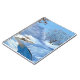 Hermoso ilustracion del campo en invierno con jardines cubiertos de nieve y una cala corriendo hacia el medio.