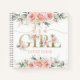 Cuaderno es un chica de baño de bebé con flores rosadas