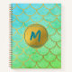 Cuaderno Escamas de Sirena Doradas Brillo Teal Patrón Monog