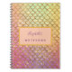 Patrón de escamas de sirena rosa, verde océano y purpúreo con brillo dorado falso. Plantillas para tu nombre y título de un libro. Un cuaderno reglado universitario para niñas y adolescentes para tareas escolares, manualidades, escribir historias o tomar notas.
