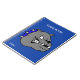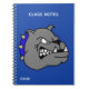 Una cabeza de dibujos animados de un bull dog gris adorna la portada de este cuaderno azul en espiral, con texto personalizado en blanco listo para personalizar. Ideal para la escuela, el hogar o la oficina.