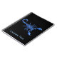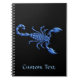 Dibujo de escorpión azul con sombreado 3D. Color de fondo personalizado. Texto personalizado.