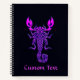 Icono de escorpión. Icono morado inspirado en el diseño de nudos celtas. Color de fondo personalizado. texto personalizado.