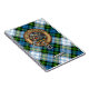Bandera escudo Campbell rodeada de una correa y hebilla sobre el fondo escocés de la ropa. Texto personalizado.