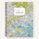 Un diseño elegante, moderno, chispeante, elegante y muy elegante, de arcoiris machacado, Relieve metalizado púrpura, verde azulado, amarillo y plateado. Personalice este bloc de notas agregando un nombre y un monograma, o cualquier otra palabra que desee. Un cumpleaños encantador, un regalo de Navidad o un regalo para una amiga, mamá o cualquier otra mujer que ame purpurina, chispas y romance.