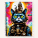 {{{{ Steampunk Cat From Outer Space}}} arte de IA colorido con naves espaciales, castillos medievales y un atrevido gato tabby.