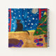 Toda la casa está dormida, pero el lindo gato negro se sienta pacientemente en el umbral de la ventana esperando que llegue Santa. La nieve cae del cielo iluminado por la luna, las babosas de perro marrón en la alfombra y el árbol de Navidad en la esquina está decorado con brillantes mejillones, bolas de vidrio de color y una brillante estrella amarilla en la parte superior. Esta es una acuarela original festiva, que le traerá toda la emoción de esperar a los Navidades.