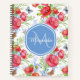 Un bonito cuaderno de tamaño estándar con flores de amapola roja con mariposas azules y naranjas. Personalice añadiendo su nombre y su monograma a la placa de octógono azul redondeado del niño pequeño. Esto es parte de la Colección Monograma de la Mariposa Azul Floral Rojo Poppy.