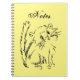 Un divertido cuaderno en espiral de regreso a la escuela con un original personalizado de dibujo de línea de un gatito adorable! Fondo amarillo brillante.