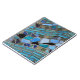Mosaico azul turquesa con cristal negro, azul, verde claro, dorado, gris y blanco.