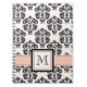 Este bonito y cubierta rosada y negra elegante del cuaderno espiral del damasco con un fondo ligeramente texturizado pueden ser personalizados con su monograma o inicial en el diseño de la cinta de la puntada del contraste. Este cuaderno de encargo se puede también utilizar como diario, diario, materiales de oficina caseros o de nuevo al regalo de la escuela. Diseñado por Chrissy H. Studios, LLC.