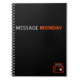 Cuaderno espiral negro de lunes del mensaje con el mensaje lunes y logotipo en color original.