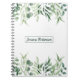 Este cuaderno de espiral personalizado en verde verano es el regalo perfecto para ella. El diseño botánico presenta un magnífico arreglo de hojas de eucalipto acuarela y vegetación con ramas delicadas. Personalice el cuaderno con su nombre o apellido. Puede cambiar el tipo de letra, el color del texto y el color de fondo como desee.