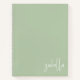 Este cuaderno minimalista moderno presenta su nombre en una caligrafía de escritura blanca a mano sobre un fondo verde salvia. La tipografía está colocada de manera elegante en la esquina inferior derecha. Perfecto para la oficina, dormitorio, regreso a clases o negocios.