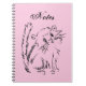 Un divertido cuaderno en espiral de regreso a la escuela con un original personalizado de dibujo de línea de un gatito adorable! Fondo rosa.