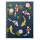 Hermosa ilustración vectorial minimalista de coloridas carpas japonesas nadando entre nenúfares en un estanque. La carpa es una variedad ornamental de carpa domesticada en Japón de colores brillantes.