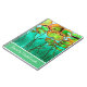 De una pintura acuarela original de un estanque con lirios. Arte sereno y verde que se aplacará. Bonita pintura de arte con colores verdes modernos.