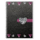 Cuaderno estilo de cuero negro con chorro de corazón
