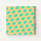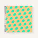 Este cuaderno de espiral tiene un conjunto de cuchillas planas turquesas impresas en una superficie naranja.