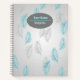 Hermoso patrón de hojas turquesa-grises. patrón de frondas de palmeras turquesa gris. Con espacio para personalizar o personalización con un nombre, monograma o inicial de su elección. Ornate, gracioso.
