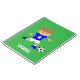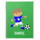 ¡Este lindo bloc de notas es genial para los chicos que son hinchas de fútbol o futbolistas! Viene con un chico lindo en una camiseta de fútbol de moda azul con estrella, rayas blancas en las mangas, pantalones cortos blancos y botas de fútbol azules a juego, ¡con tíos listos para patear una pelota de fútbol por gol! Personaliza con el nombre del niño.