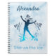 Un cuaderno de ideas para un regalo de patinaje artístico chica - para crear un diario, tomar notas o dibujar. Color: tonos azules sobre fondo de hielo azul Diseño: Doodle en forma de estrella + silueta de un patinador gráfico chica + personalizar con el nombre del patinador + "Estrella sobre el hielo" o un mensaje personalizado. Diseñado por iceskatingpassion.com. Otros colores en la tienda