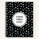Estrellas azul claro y blancas en azul marino. El texto de las buenas vibraciones puede ser personalizado.