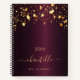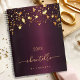 Un oscuro fondo burdeos de aspecto metálico, decorado con estrellas de oro falsas. Plantilla de un año, Personalice y agregue un nombre y un título. El nombre está escrito con una escritura de estilo dorado y moderno con letras a mano con chispas. Para que los cambios sólo eliminen el nombre del ejemplo, deje los espacios o la emoji delante y después del nombre.