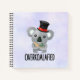 Un cuaderno con un diseño gracioso y humorístico con el ilustracion de un lindo koala usando un sombrero negro de top con el texto tipográfico debajo que dice sobredimensionado.