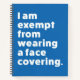 Muchas personas están usando mascarillas y otras coberturas para protegerse del COVID-19 y de infecciones similares; en algunas partes del mundo, existe un requisito legal para usarlas en ciertas áreas. Sin embargo, no todos pueden usar una máscara. Algunas personas están exentas por razones de salud u otras. A menudo se conceden exenciones a los niños. También se aconseja a las personas con asma, dificultades respiratorias, ansiedad y muchas otras afecciones que no usen mascarillas. Este diseño tiene la intención de dejar esto claro a todos los que lo rodean. El texto claramente dice "Estoy exento de usar un cubrimiento de cara".