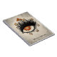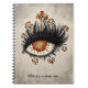 Cuaderno de ojos raros con un ilustracion digital de un ojo hembra con iris roto hecho de lava y pestañas largas terminando en flores bizarras con pétalos angustiados en un cielo gris turbio. Este portátil genial con un toque psicodélico y gótico tiene un texto personalizable.