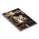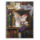 Dos gatitos y un hada se sientan en una estantería llena de libros para su gato mágico.