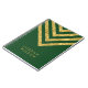 Cuaderno elegante que ofrece el falso modelo del galón del oro contra una cubierta verde del fondo que usted puede personalizar con su nombre. Grande para la escuela y la oficina.