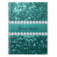 Cuaderno Falso purpurina verde azulado elegante y diamantes