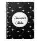 Cuaderno Fancy Black Faux Silver Diamond Design Nombre pers