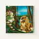 Un rey de Cavalier, Charles Spaniel, está en la mágica casa de un árbol forestal de flores de su amigo.