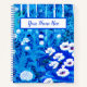 Diario en un ilustracion semi-abstracto de un bosque de fantasía con flores, follaje, árboles y pájaros, en tonos cobalto azul y blanco, con nombre personalizado