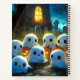 Pequeños espíritus lindos sentados juntos escuchando una historia espeluznante en el cementerio por la noche.