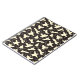 Divertido patrón de Halloween con pequeños fantasmas de color crema, cadenas y grilletes, sobre un fondo negro sólido. Este es un patrón fijo, pero puedes cambiar el tamaño y la posición del patrón y agregar tu propio texto.