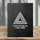 Añada la imagen del logotipo de su negocio a un falso fondo gráfico de cuero negro. Un cuaderno de cuero falso para promocionar su pequeño negocio. Este efecto digital imprime plano como una foto sin textura de cuero real. Agregue un mensaje de texto personalizado para crear su propio elemento promocional para los clientes.