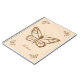 Forma de mariposa en textura falsa (no real) de Relieve metalizado amarillo dorado parecido a la textura. La mariposa se coloca como un gran motivo en el centro y como pequeños motivos en cada esquina. También hay un área de texto personalizable. AVISO: EL DISEÑO ES UNA IMAGEN DIGITAL Y SE IMPRIMIRÁ EN EL PRODUCTO.