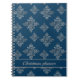 El diseño original de Destei de un patrón decorativo de copos de nieve en una textura falsa de Relieve metalizado plateado-gris sobre un color de fondo azul. También hay un área de texto personalizable que ahora dice: "Planificador de Navidades". AVISO: El diseño es una imagen creada digitalmente que se imprimirá en el producto.